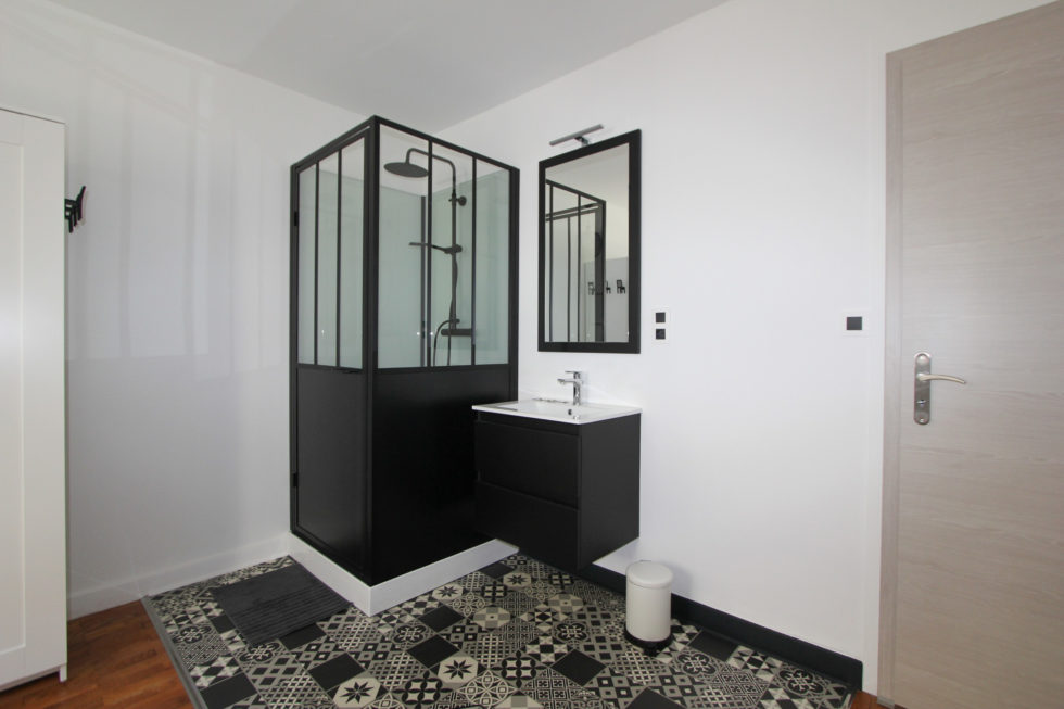 Notre plus grande chambre avec ses 18 m² de superficie. Espace détente et accès à la terrasse plein sud. Salle de bain partagée